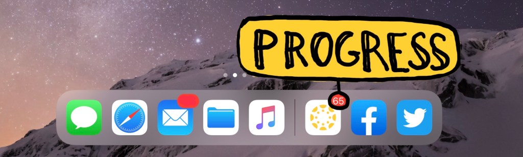 For those of you not familiar with the Canvas Teacher app, the 114 in the red oval represents the number of items in need of grading this weekend. Some are quick check-offs: complete or incomplete. About half are assessments from my mastery-based precalculus course. The rest come from my writing intensive matrix theory course (so I need to comment on clarity of communication in addition to correctness of the problem) plus rough drafts of their final projects. We did peer review in class on Thursday. At a minimum, I need to ensure that the planned structure meets expectations so they have time to incorporate requests before it is due in 3 weeks.