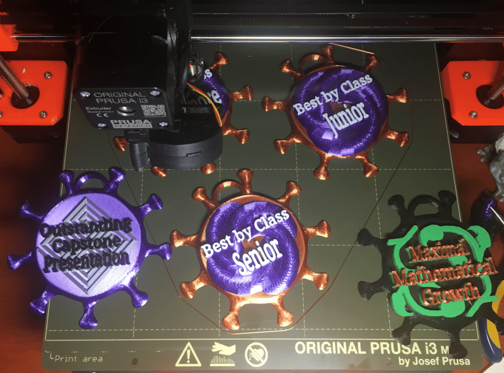 For a slightly bigger celebration, I’ve been working with my colleagues to create a virtual event for our mathematics majors. I want to make it memorable–especially for our graduating seniors. There will be awards, honor society inductions, swag, and fun. For my part, I’m creating COVID-themed medallions for our Math Major Awards and I’m just getting started.