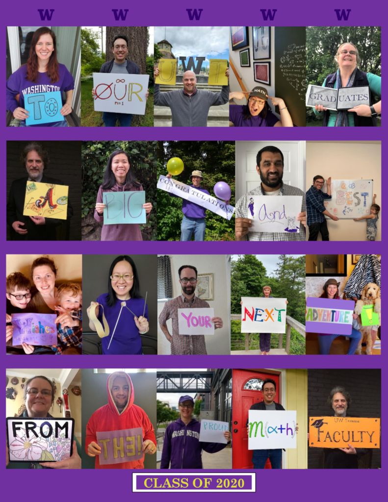 You were just awarded your degrees virtually. It’s just not the same as sitting in the Tacoma Dome and clapping as you cross the stage. It has been my pleasure to work with you at UW Tacoma. You did an amazing job pivoting capstone presentations to virtual presentations with no warning in March and you have made it through our emergency remote quarter. I am so fortunate to know you and am proud of your accomplishments.