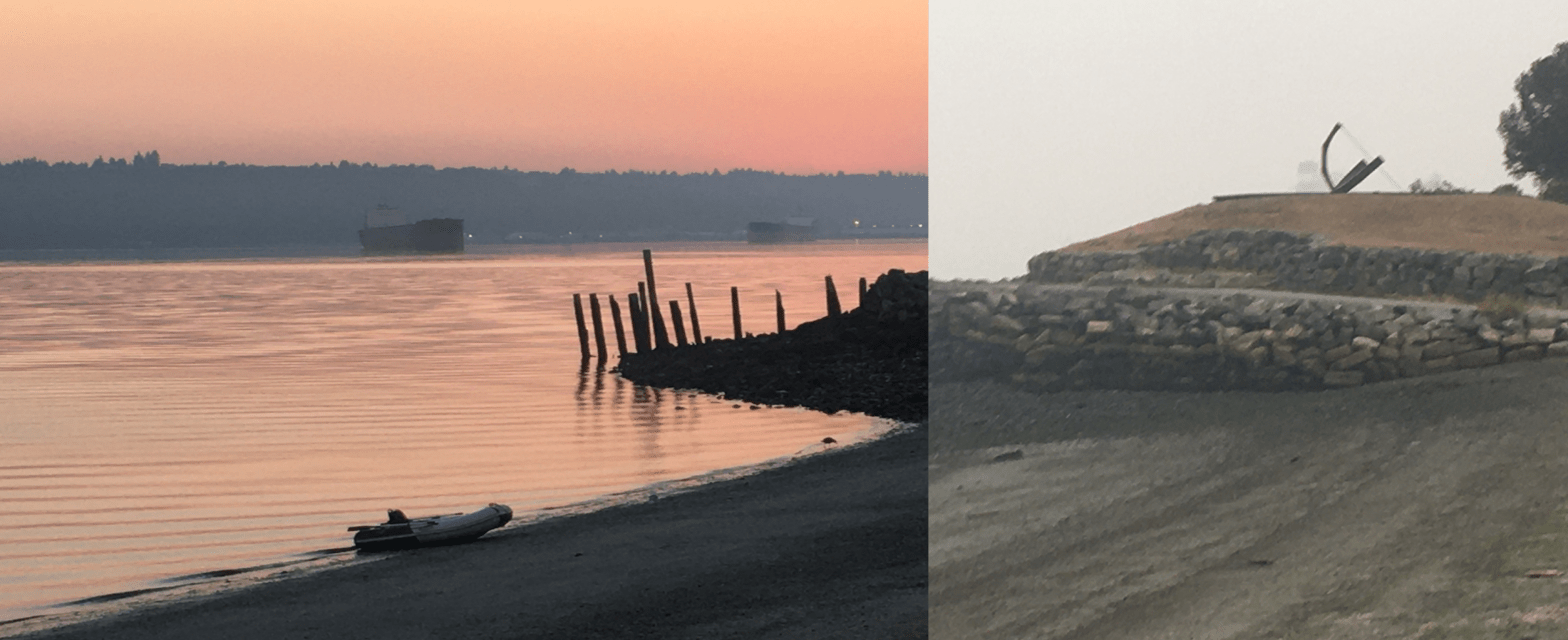 Today’s Air Quality Index (AQI) has been hovering around 200. It was approximately 190 when the image on the right was taken (it is now 208). I wasn’t paying attention to AQI four days early, when the image on the left was taken. Then I knew the western fires where affecting air quality and creating unusually colorful sunrises. What a difference a few days can make.