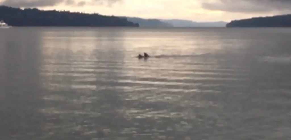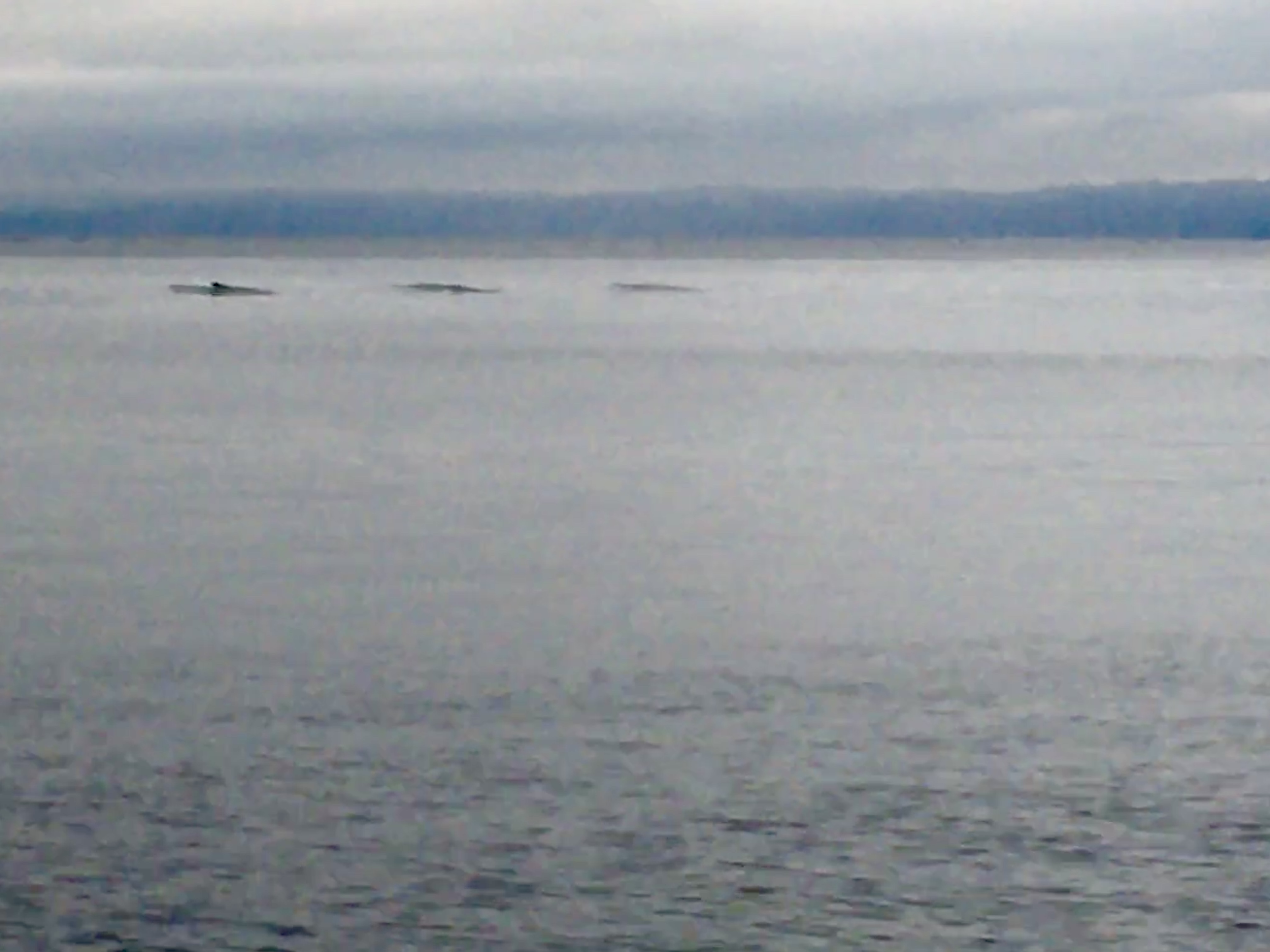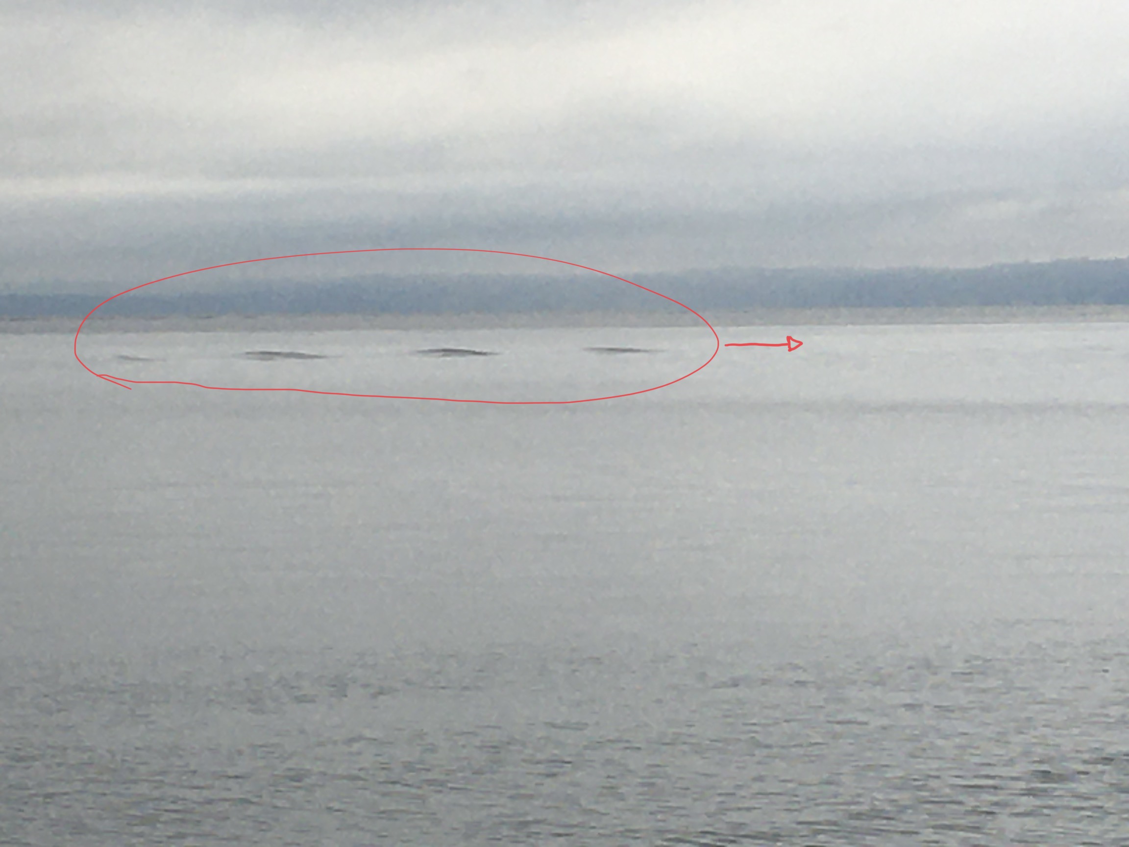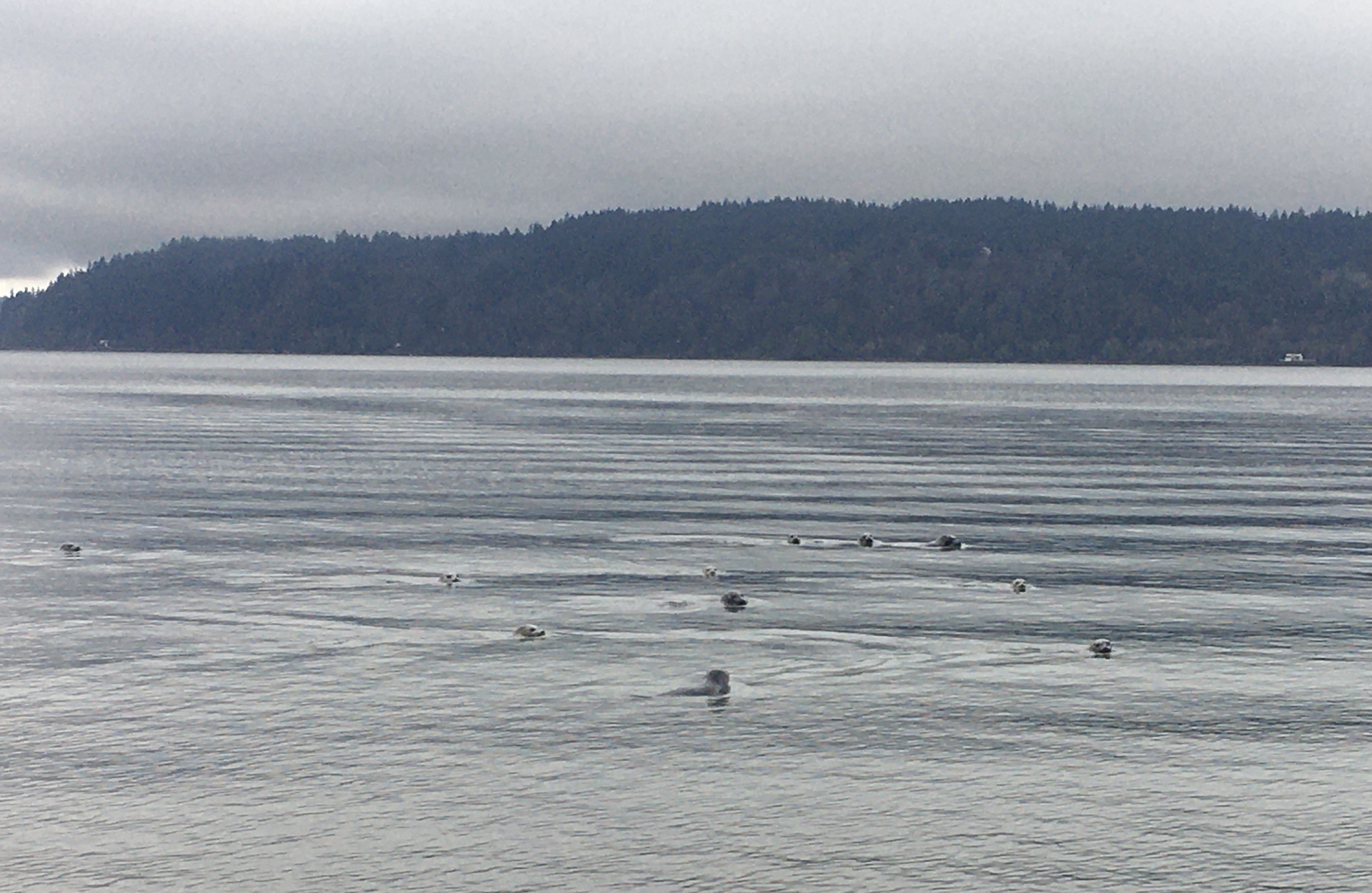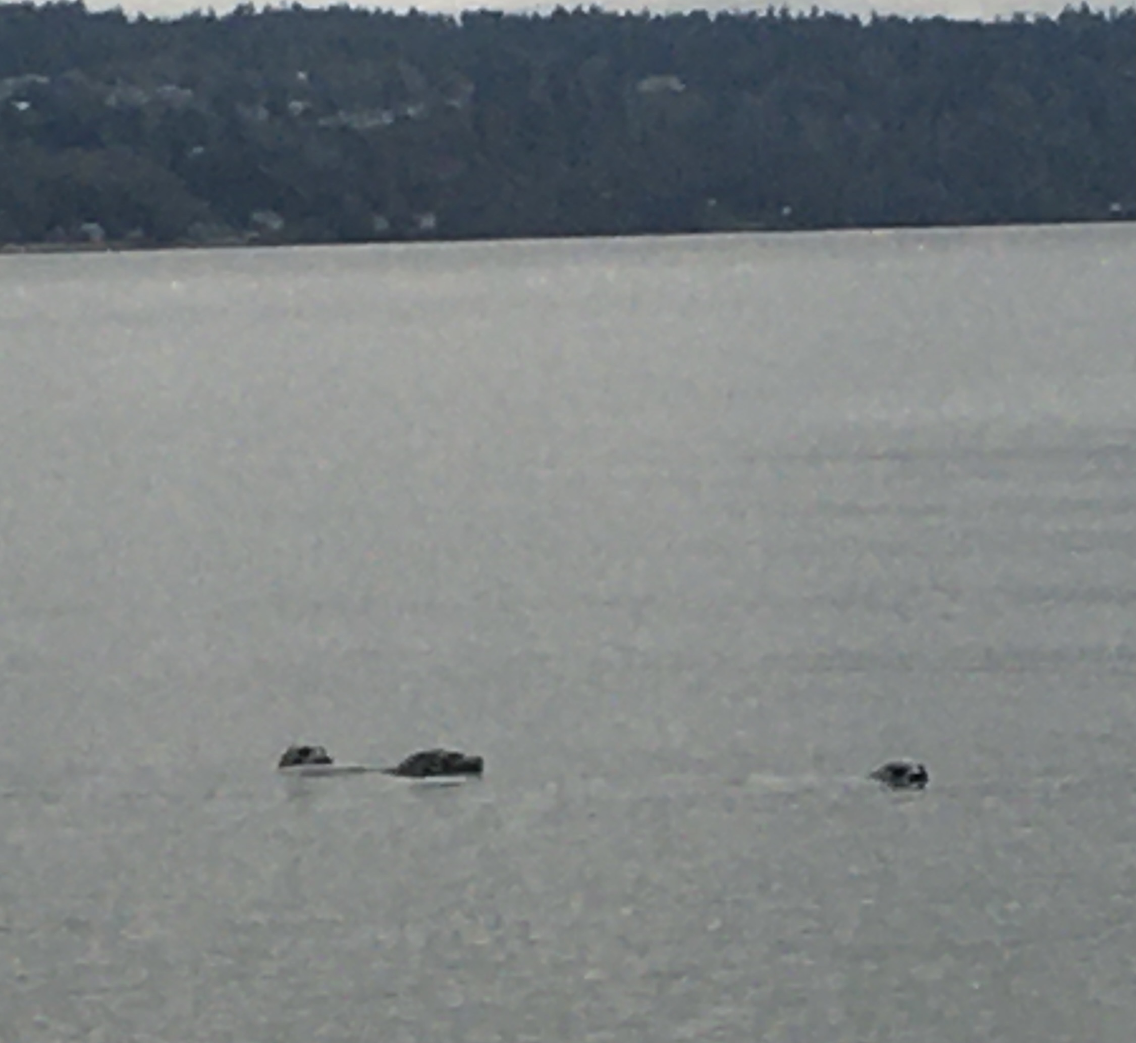Finally, in the passage halfway between Tacoma and Vashon four fast, sleek “waves” rolled by, creating amazing and regular waves on the shore that had previously been very still water. Could these have been cetacean of some form?
