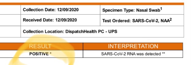 He had a positive result for SARS-CoV-2 from a nasal swab test two days previously. My head started to spin.