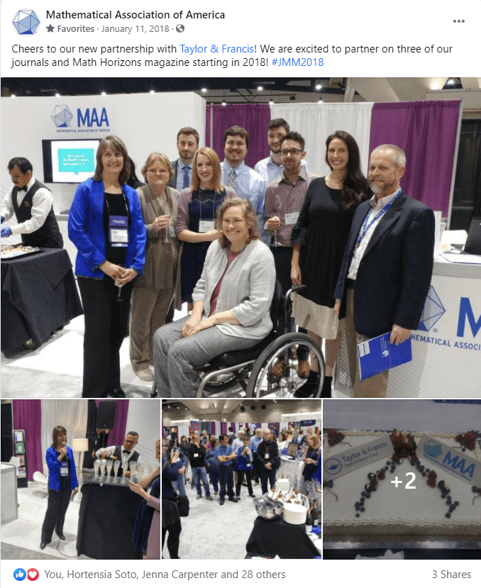 2018: San Diego. Perhaps one of my favorite photos and the start of MAA’s publication partnership with Taylor and Francis. As I was chair of the Council on Publications at the time this was a big deal.