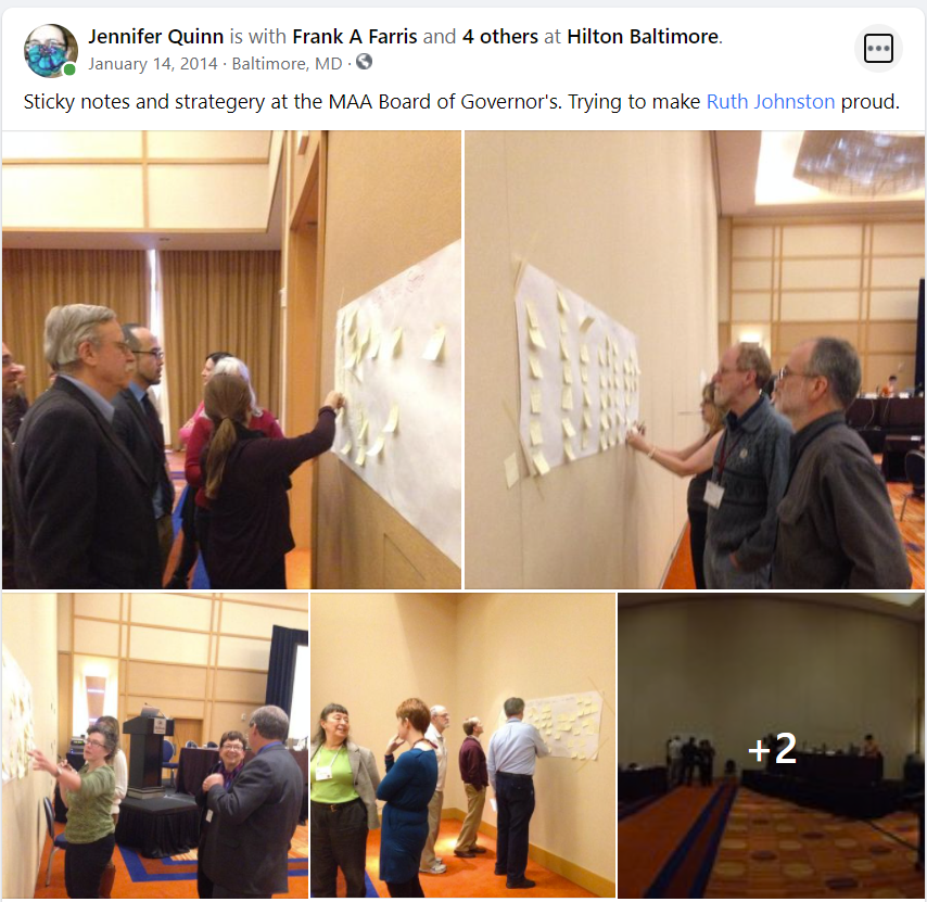 2014: Baltimore. My last JMM as 2nd VP of MAA. I led the Board of Governors in the first of many discussions to consider changing the governance structure of the association.
