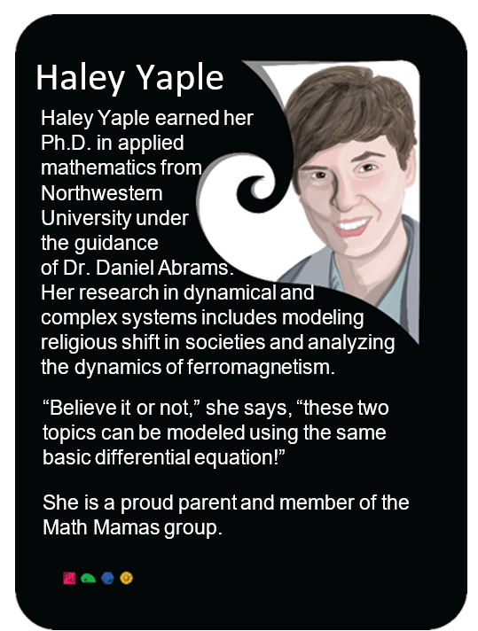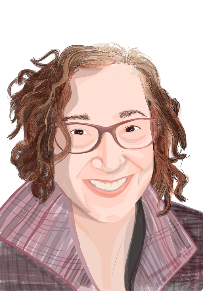 Previously, I drew a portrait for the AWM’s Notable Women in Math Playing Cards and it was selected as one of five (out of 64) for the advance advertising. When AWM made their second kickstarter stretch goal, I was asked to draw one of the promised collectable cards. I’d love to share those portraits, but cannot until AWM announces them first. (They are announcing one honoree a week at this site.) Since then, I have started drawing portraits of other mathematicians as gifts. The first for a gift exchange in the Math Mama group. I made it look like a notable woman in math playing card: