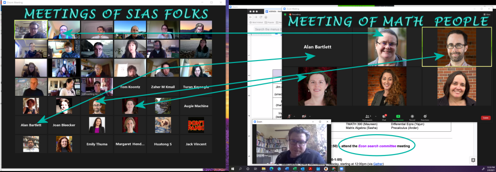 Today I learned that you can be in two Zoom meetings at the same time ON THE SAME COMPUTER. ( I haven’t quite figured out the sound controls for two meetings but no one was speaking in the Math meeting as we jumped over to the SIAS zoom for a search presentation.)