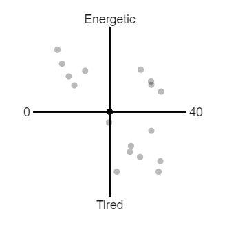 What do you notice about the check-in activity? (The horizontal axis was a stress test score with 0=no stress and 40=very high stress, the vertical axis represented energy level.)