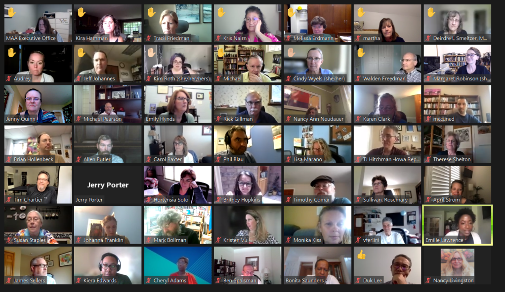 As Emille revealed each line in the slide above, representatives in Congress raised their virtual hand accordingly. She would call on one or two people to introduce themselves and provide more details to their answers. The questions were great. The responses were better. And it was an inspiring way to begin a marathon day of virtual board meetings.