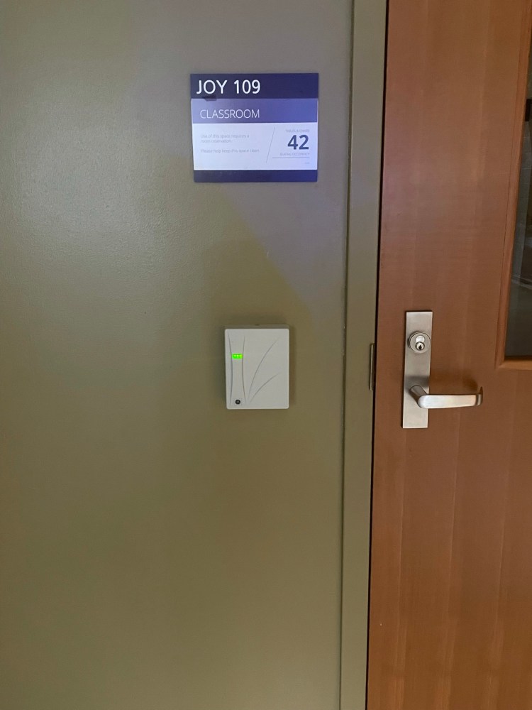 I decided to attempt access to the Joy building through the second floor door from West Coast Grocery. It was open. And further more, my classroom (JOY 109), was unlocked.