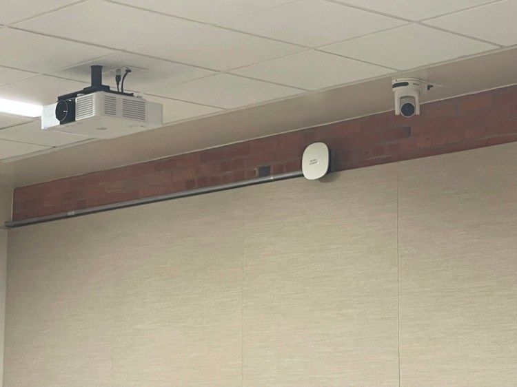 The class room tech has really been upgraded: an adjustable camera in the back of the classroom, controls to allow different inputs to the two projectors, the ability to wirelessly cast to a projector, lavalier microphone, document camera, the works. My only problem was that I couldn’t get the projectors to turn on.