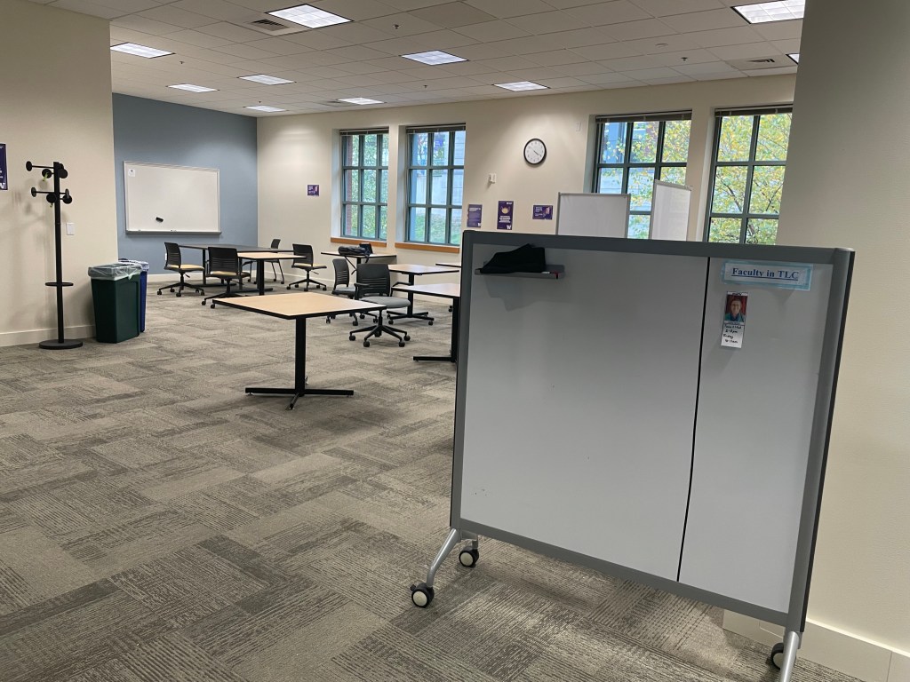 I am excited to return to the Teaching & Learning Center (TLC) of the University of Washington Tacoma for the first time in a very long time, quite possibly 589 days. Renovations started during the COVID closure kept the second floor of the Snoqualmie building off-limits until today. I held my very first in-person drop-in hours in the TLC since March 2020.