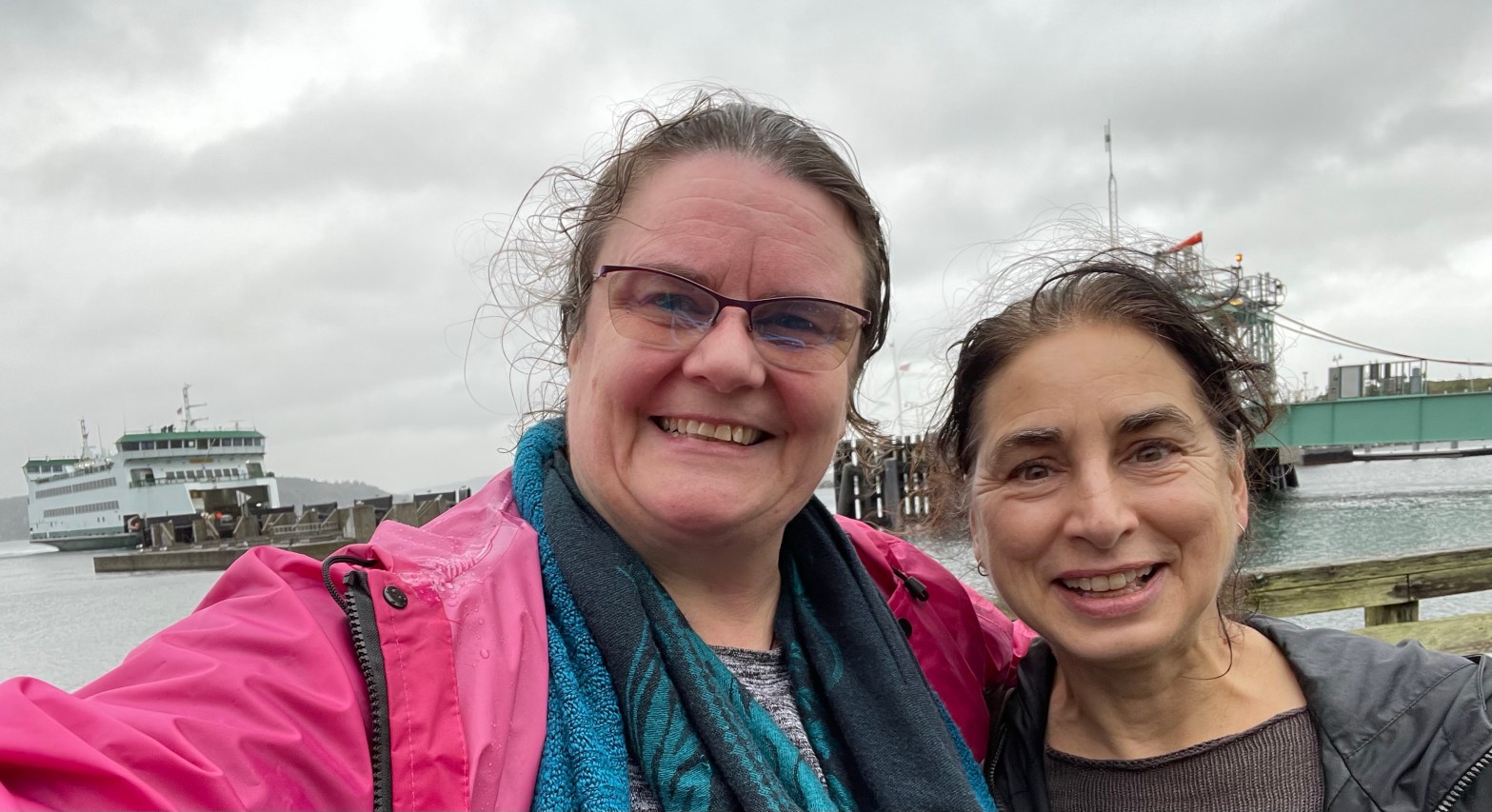 Cover image of me and my best college friend Ana after a wet and blustery walk along the Tacoma waterfront as she prepares to board the incoming ferry.