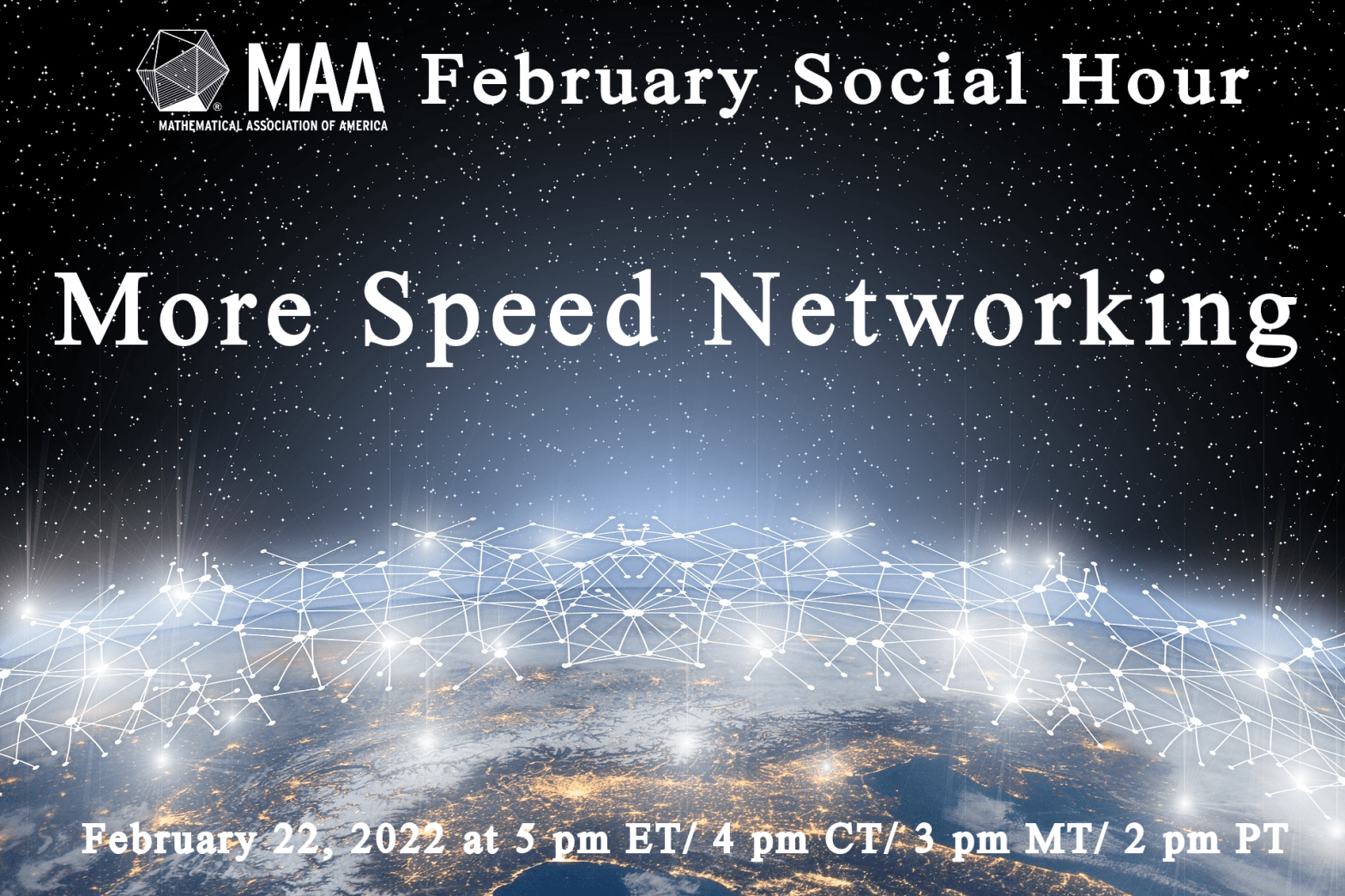 Today is February 22, 2022. That’s 2/22/22. And at 2 pm Pacific time, I hosted a Speed Networking event for the Mathematical Association of America. Eighteen MAA members (including myself) were matched for 3 minutes conversations–round robin fashion. I cycled through 13 conversations (missing only 4 participants). We talked about teaching, family, MAA, and mathematics.