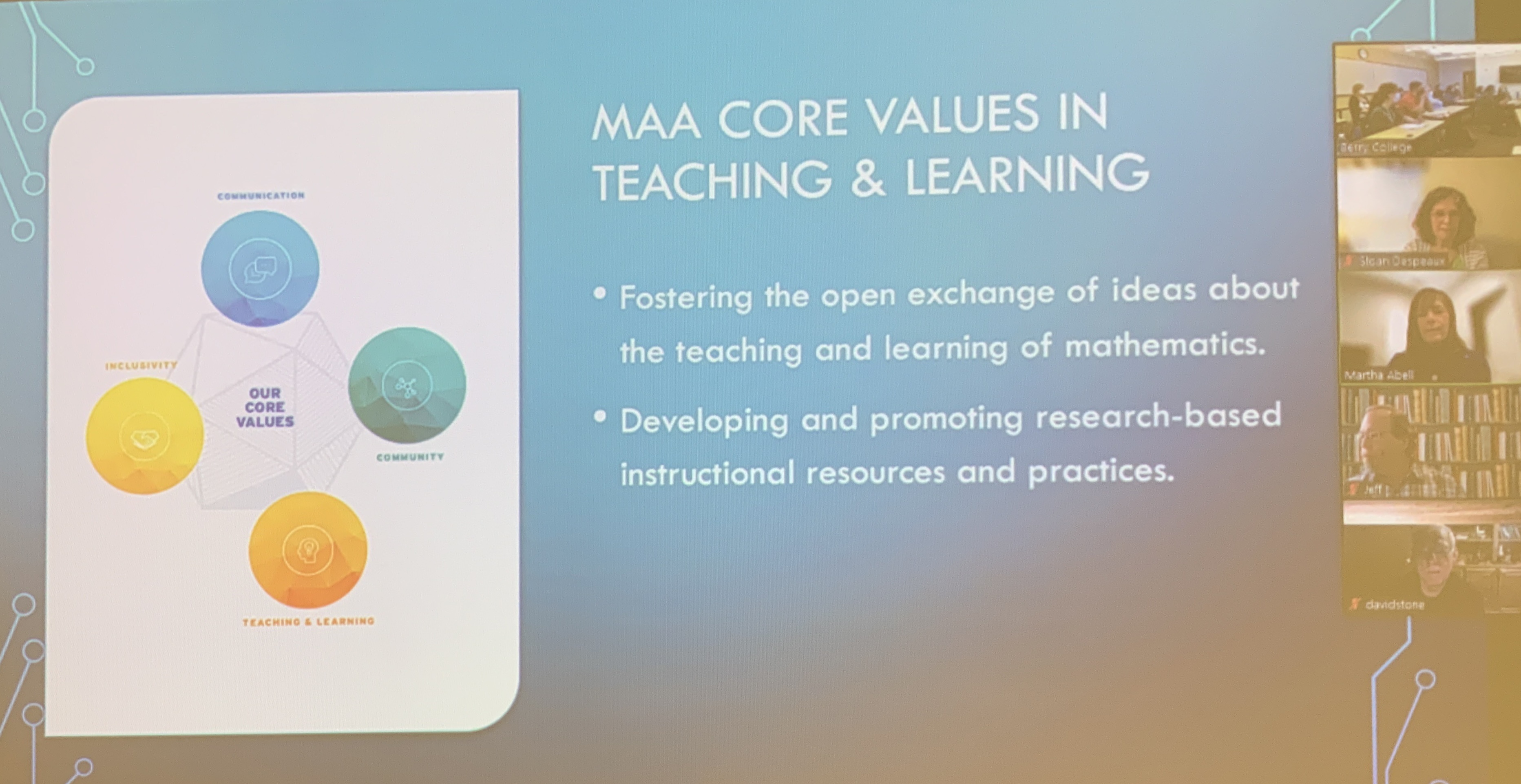 This was my second truly hybrid math conference in a week. As we look forward to more in-person events, it strikes me that hybrid is here to stay. It is being executed well on college and university campuses. Now how can we translate these successes to bigger conference venues?