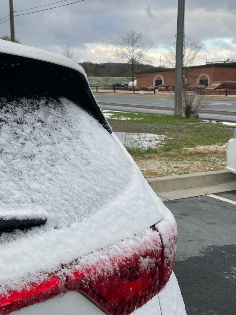 Weather was beautiful the first day. Warm and sunny. Imagine my surprise to wake up to snow on my rental car the next morning. I had to improvise a window scraper using an old hotel room key.