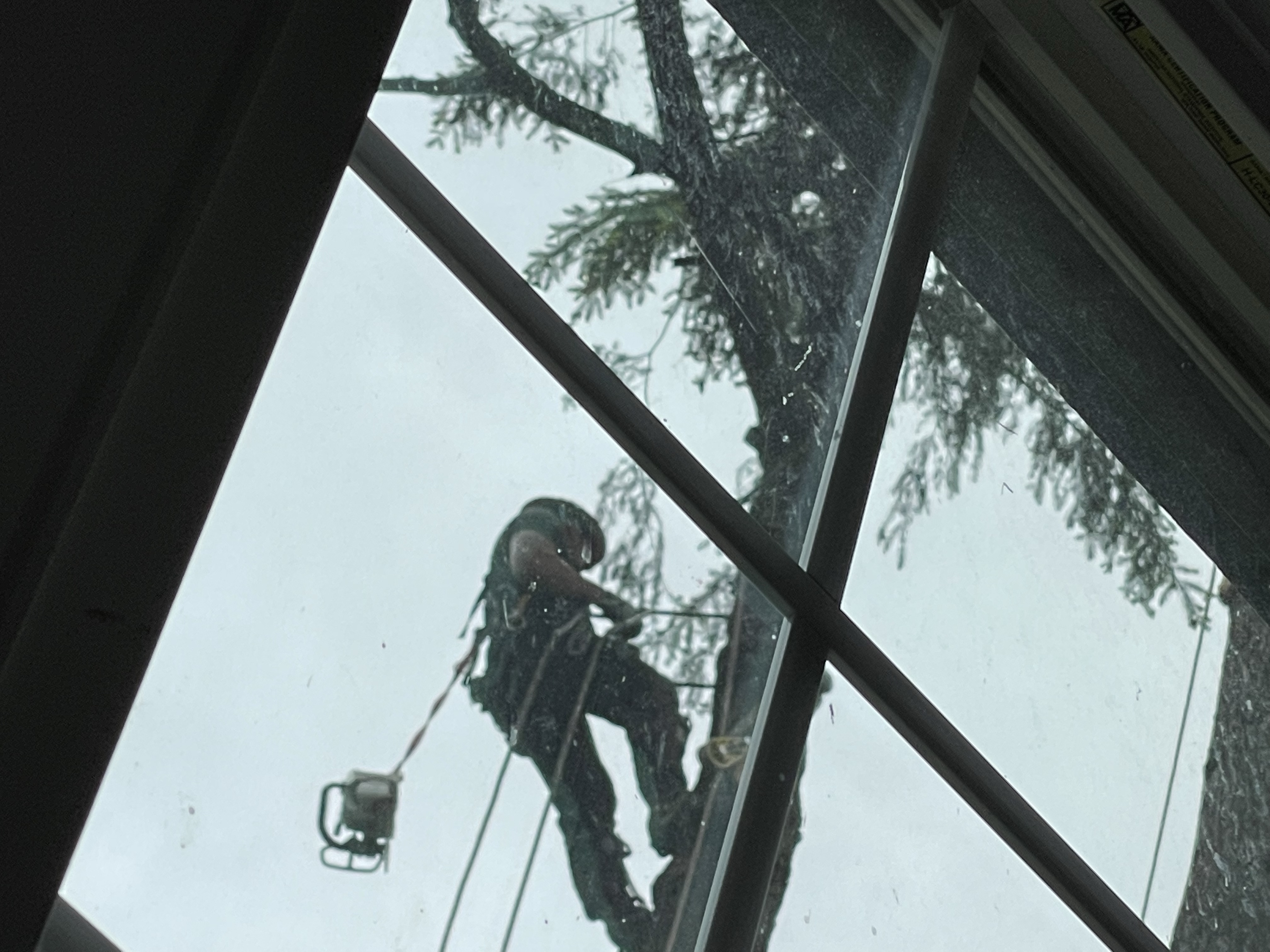 I watched as the huge evergreens in my neighbor’s yard were removed by professionals. Sitting in my study, I was previously surrounded by greenery. Birds and squirrels frolicked in the branches.