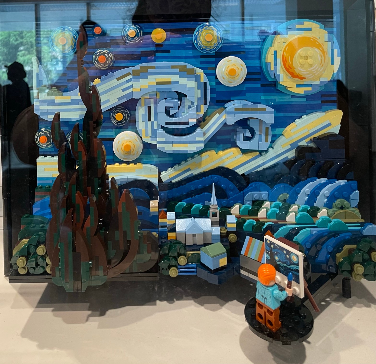 The cover image is a Lego set of Starry Night available in the gift shop. I love it because you can see Mark’s reflection in the black frame to the left.