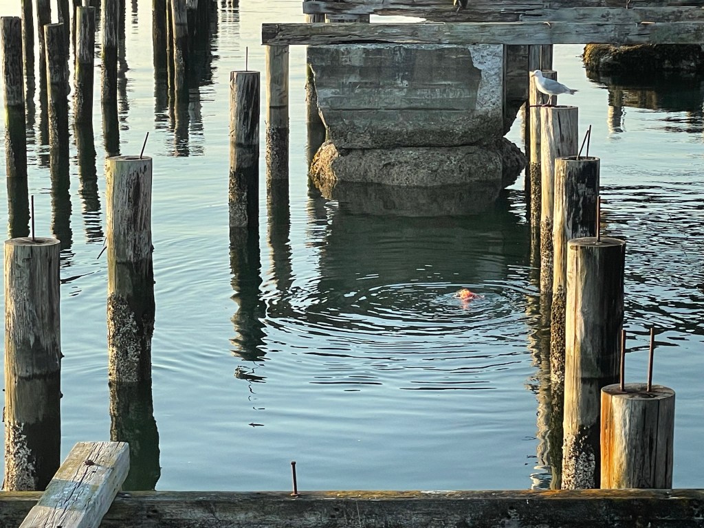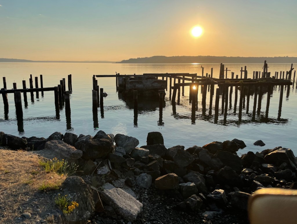 It’s been hot in the Pacific Northwest this week. To beat the heat, I took a walk along the waterfront as the sun was rising. Seems like others had the same idea. The place was bustling with joggers, bicyclists, and fisherfolk.