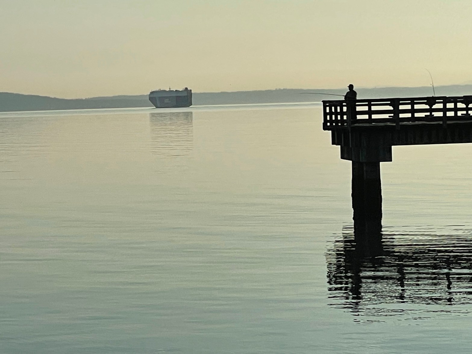 It’s been hot in the Pacific Northwest this week. To beat the heat, I took a walk along the waterfront as the sun was rising. Seems like others had the same idea. The place was bustling with joggers, bicyclists, and fisherfolk.