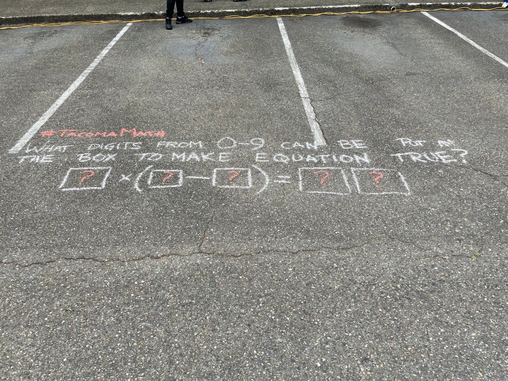 #TacomaMath had chalk puzzles throughout the location to engage the minds of people waiting in lines. Today we picked some open middle problems.