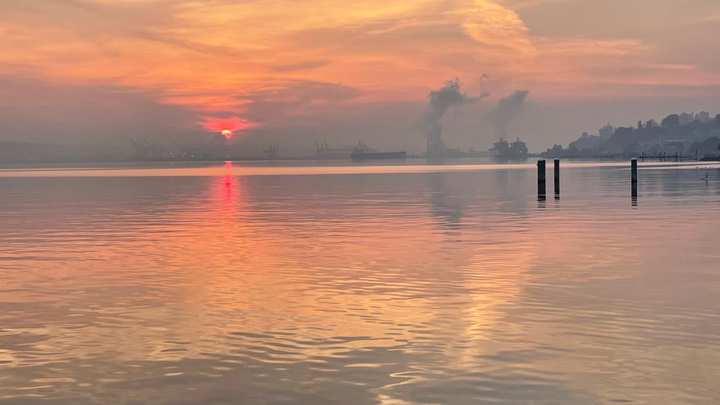 I decided to throw caution to the wind and brave the great outdoors. One thing you can say about smoky skies, they make for beautiful sunrises.