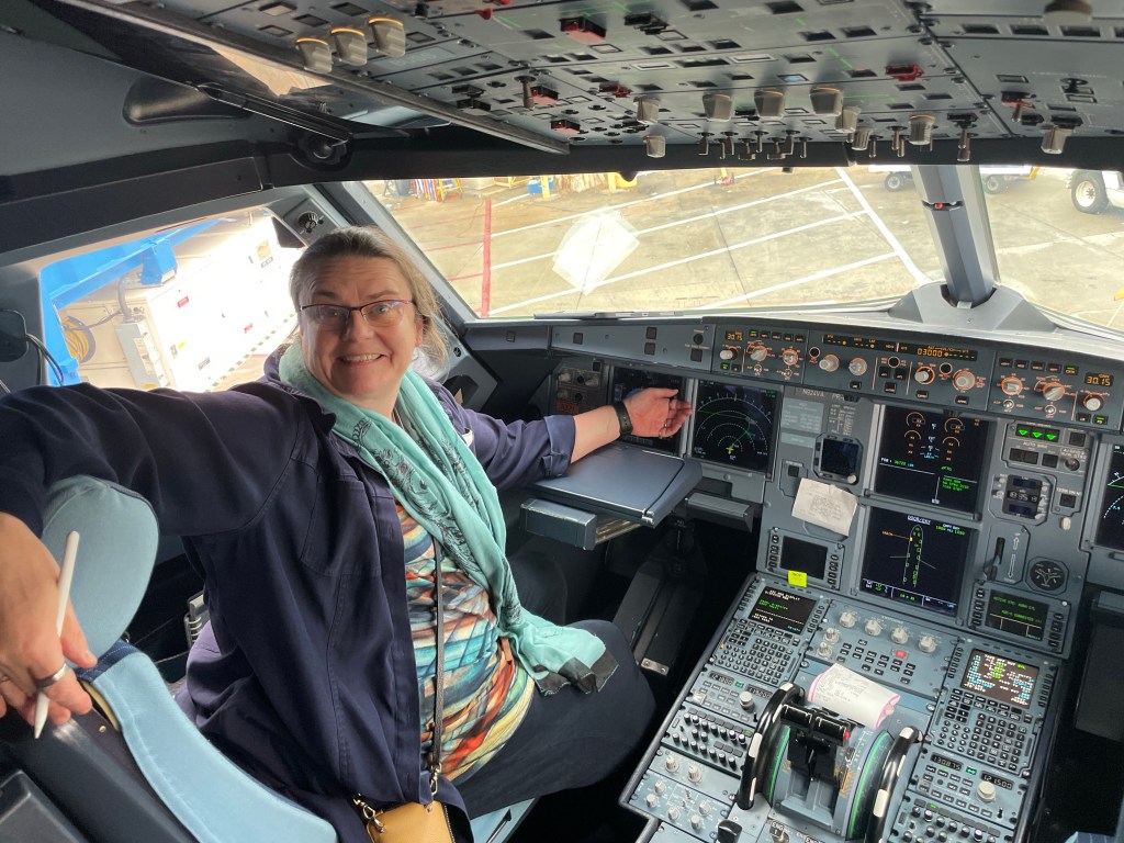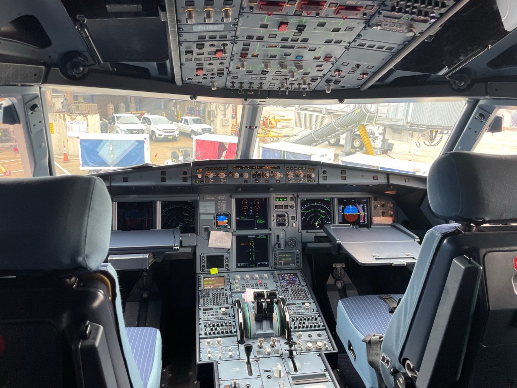 So the Captain invited us to come up and take pictures in the cockpit. And we did.