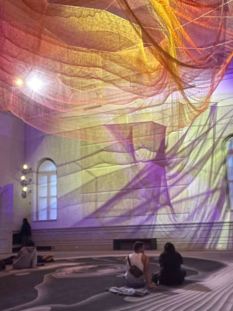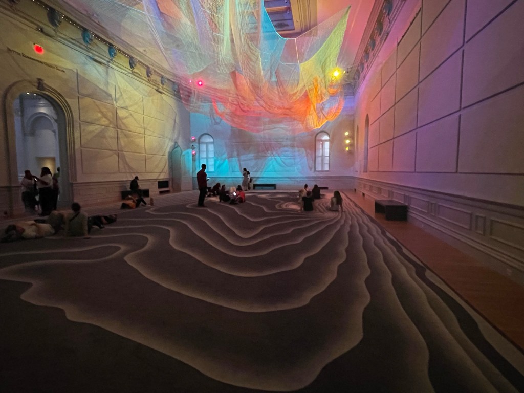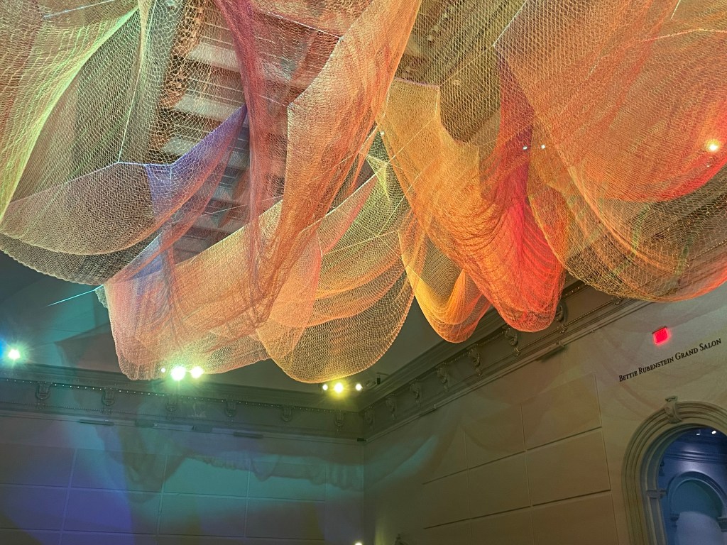 I also admired Janet Eschelman’s fiber art installation 1.8 Renwick—inspired by data from the 2011 Tohoku earthquake. Lines on the carpet are meant to be a topographic map of the surface above. It was a sensory delight as the lights changed colors and cast delicate shadows across the wall.