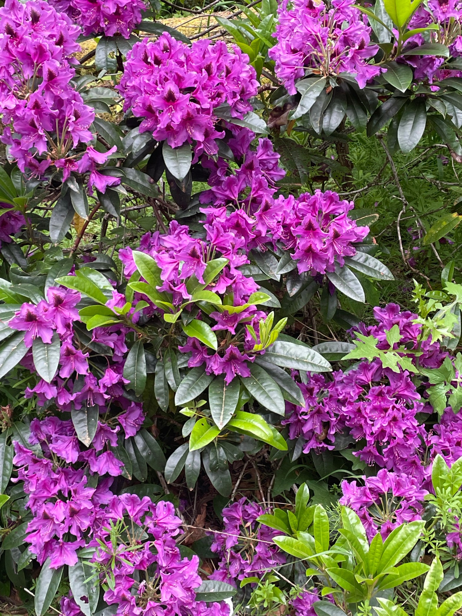 Rhododendrons will always and forever remind me of my father. Growing up in Rhode Island there was a huge purple bush along side one house and our own private rhododendron and azalea garden (with trails, a pond, and wisteria covered gazebo) at another. Seeing all the blossoms this morning while walking in Point Defiance Park made me nostalgic for home and family.