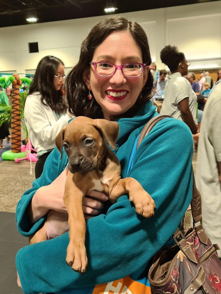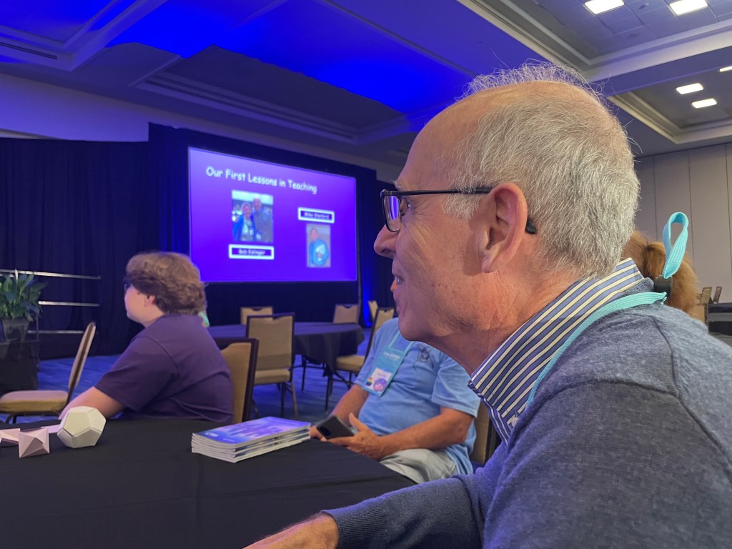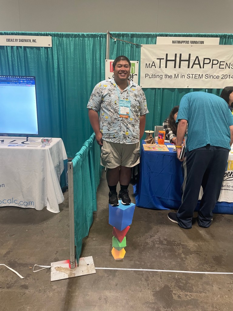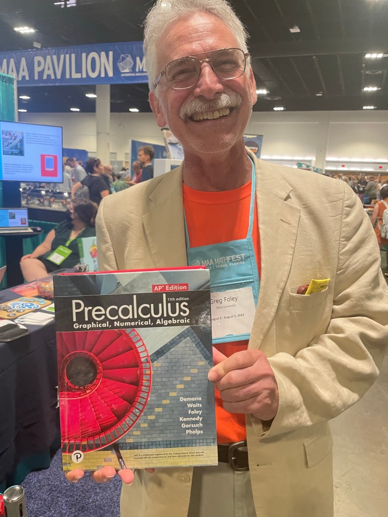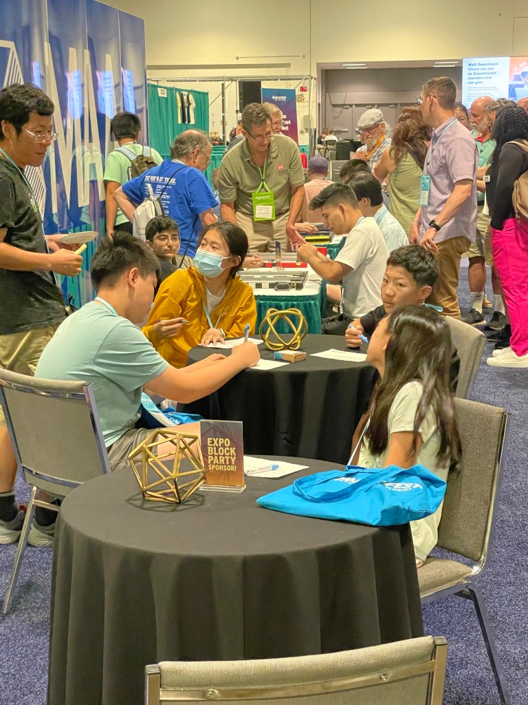 Math Happens optical illusion with me, MAA Executive Director Michael Pearson, and UW Tacoma math graduate 2023 Yoshiriro Yagi.Greg Foley displays his new textbook.Finally meeting BEAM CEO Dan Zaharapol for the first time IRL. Backgammon and puzzles in the MAA Pavilion.Art Benjamin in his element. (Photo credit: Jeanette Shakalli.)Arriving at the Columbia (in Ybor) for dinner.What do these friends all share in common? They each received a Haimo award (2019, 2000, 2007, and 2023.)Yoshi meets Carol. He used her book Closer and Closer in his senior year at UW Tacoma. Puppy break in the MAA Pavilion.SPCA visit sponsored by Hudson River Trading. And Puppies.And Puppies. (Actually only 3 puppies but they were a hit with the crowd.)Power-up before the USA Math Olympiad celebration. Sweets and t-shirts from Citadel.When it is hot and humid, the time to walk along the river is in the evening, See here a tiki boat and the University of Tampa. Families with kids playing in the park at 9:30 pm. It was still hot but there was a nice breeze.