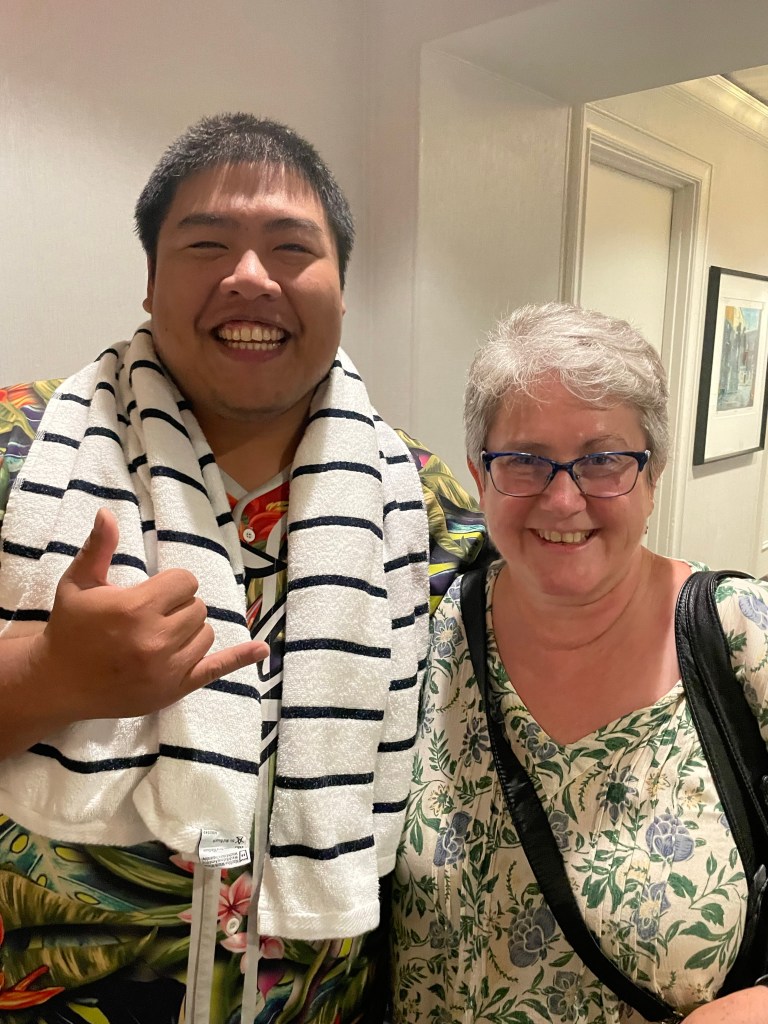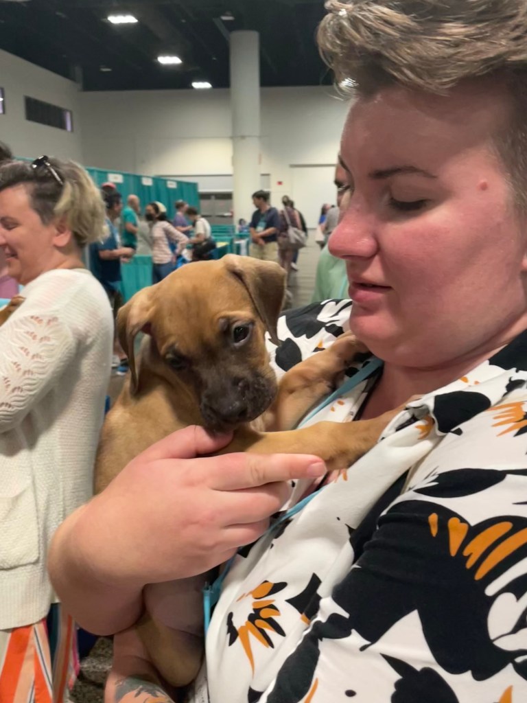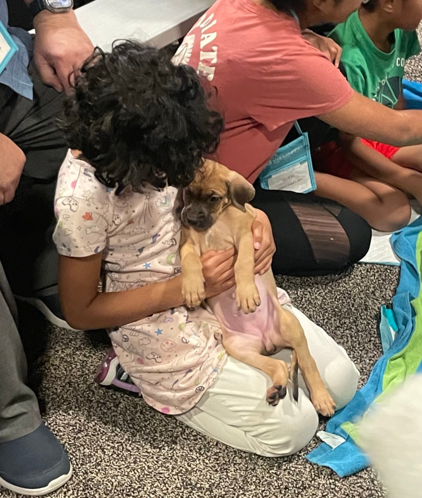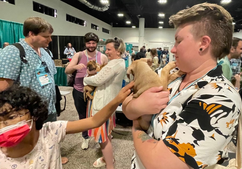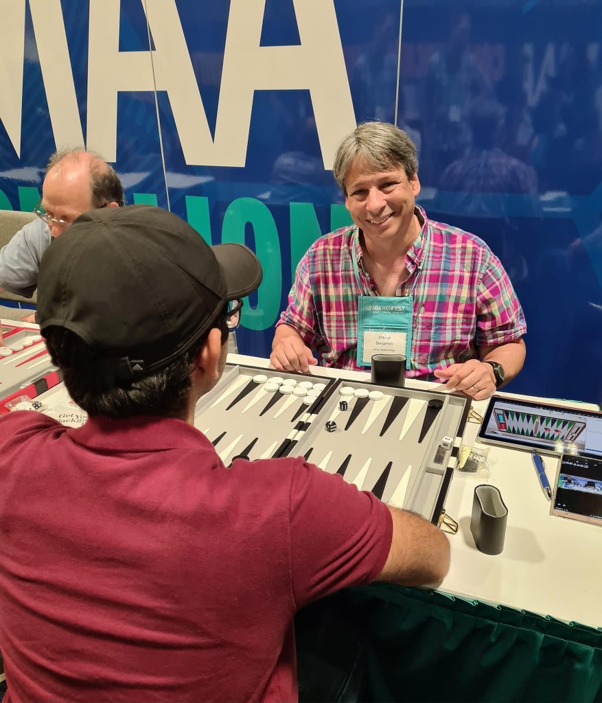 Math Happens optical illusion with me, MAA Executive Director Michael Pearson, and UW Tacoma math graduate 2023 Yoshiriro Yagi.Greg Foley displays his new textbook.Finally meeting BEAM CEO Dan Zaharapol for the first time IRL. Backgammon and puzzles in the MAA Pavilion.Art Benjamin in his element. (Photo credit: Jeanette Shakalli.)Arriving at the Columbia (in Ybor) for dinner.What do these friends all share in common? They each received a Haimo award (2019, 2000, 2007, and 2023.)Yoshi meets Carol. He used her book Closer and Closer in his senior year at UW Tacoma. Puppy break in the MAA Pavilion.SPCA visit sponsored by Hudson River Trading. And Puppies.And Puppies. (Actually only 3 puppies but they were a hit with the crowd.)Power-up before the USA Math Olympiad celebration. Sweets and t-shirts from Citadel.When it is hot and humid, the time to walk along the river is in the evening, See here a tiki boat and the University of Tampa. Families with kids playing in the park at 9:30 pm. It was still hot but there was a nice breeze.